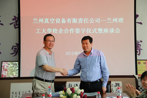 2015年6月7日下午16時,蘭州真空設備有限責任公司與蘭州理工大學戰(zhàn)略合作座談會暨《LZKR控制系統(tǒng)軟件開發(fā)平臺合作框架協(xié)議》簽字儀式在蘭州理工大學電信學院會議室隆重舉行。公司董事長梁新偉、總經(jīng)理于安民、副總經(jīng)理胡浩、技術部長馬強、技術部電氣設計室主任張峰與蘭州理工大學校長王曉民、副校長芮執(zhí)元、科技處長李文生、電信學院院長張愛華、副院長陳偉及駱東松教授一同參加了座談會。會上,雙方介紹了各自當前的發(fā)展態(tài)勢,回顧了前一階段合作的情況,就進一步發(fā)揮各自資源優(yōu)勢,企校聯(lián)合,解決企業(yè)項目技術難題,建立聯(lián)合教學試驗基地,形成長效合作機制進行了深入討論并達成戰(zhàn)略合作共識,表明蘭州真空與蘭州理工大學的企校合作邁上了一個新的臺階。座談會后,公司總經(jīng)理于安民與蘭州理工大學副校長芮執(zhí)元共同簽署了《LZKR控制系統(tǒng)軟件開發(fā)平臺合作框架協(xié)議》。